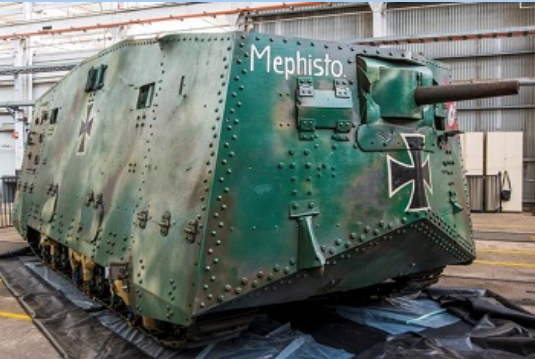 Of the twenty German A7V Sturmpanzerwagen tanks built during the Great War, only one has survived intact. 506 Mephisto, recovered in the dead of night by Australian soldiers of the 26th Battalion from the Villers-Bretonneux battleground, survived thanks to its unlikely journey to Brisbane, Australia. 506 Mephisto is not only an incredibly rare tank, but a significant artefact of the Great War. The centenary of the capture and retrieval of Mephisto, and the tank’s connection to Queensland and Australia was marked in 2018.